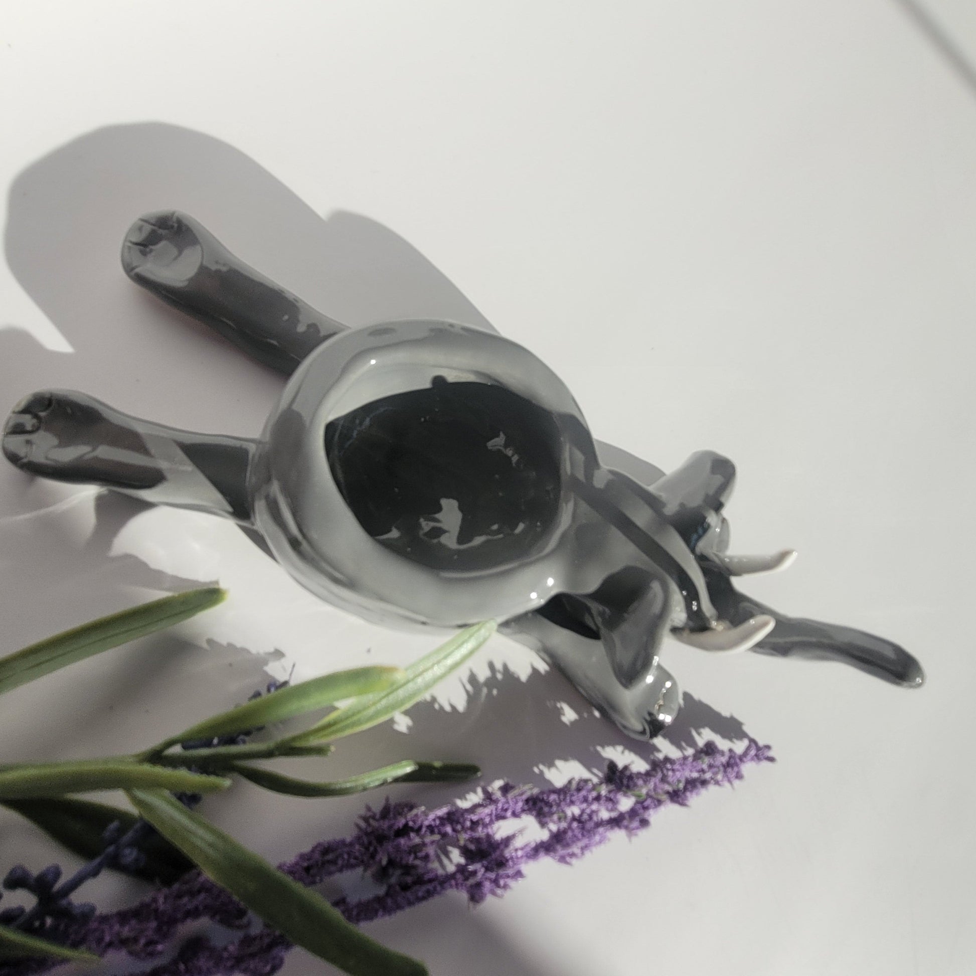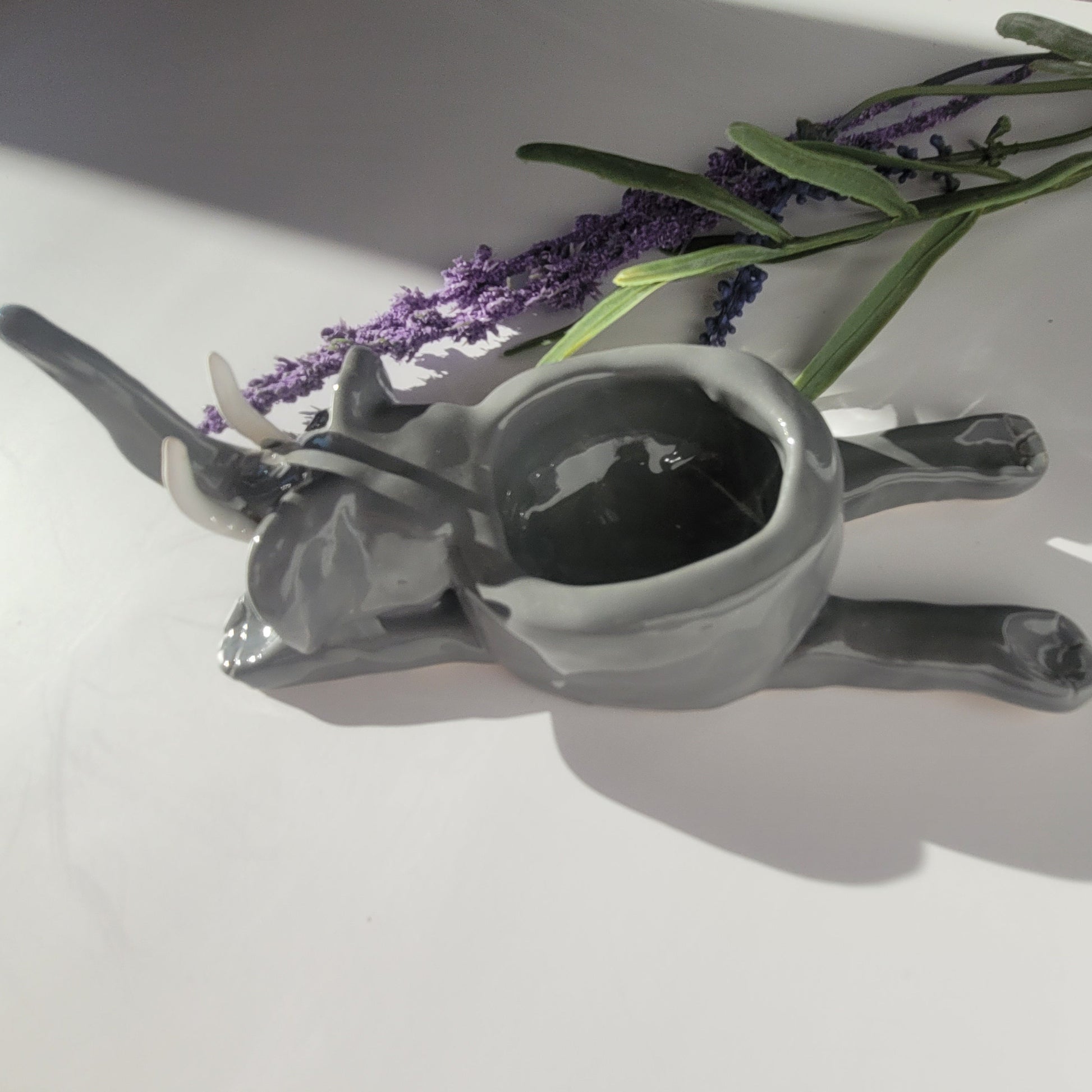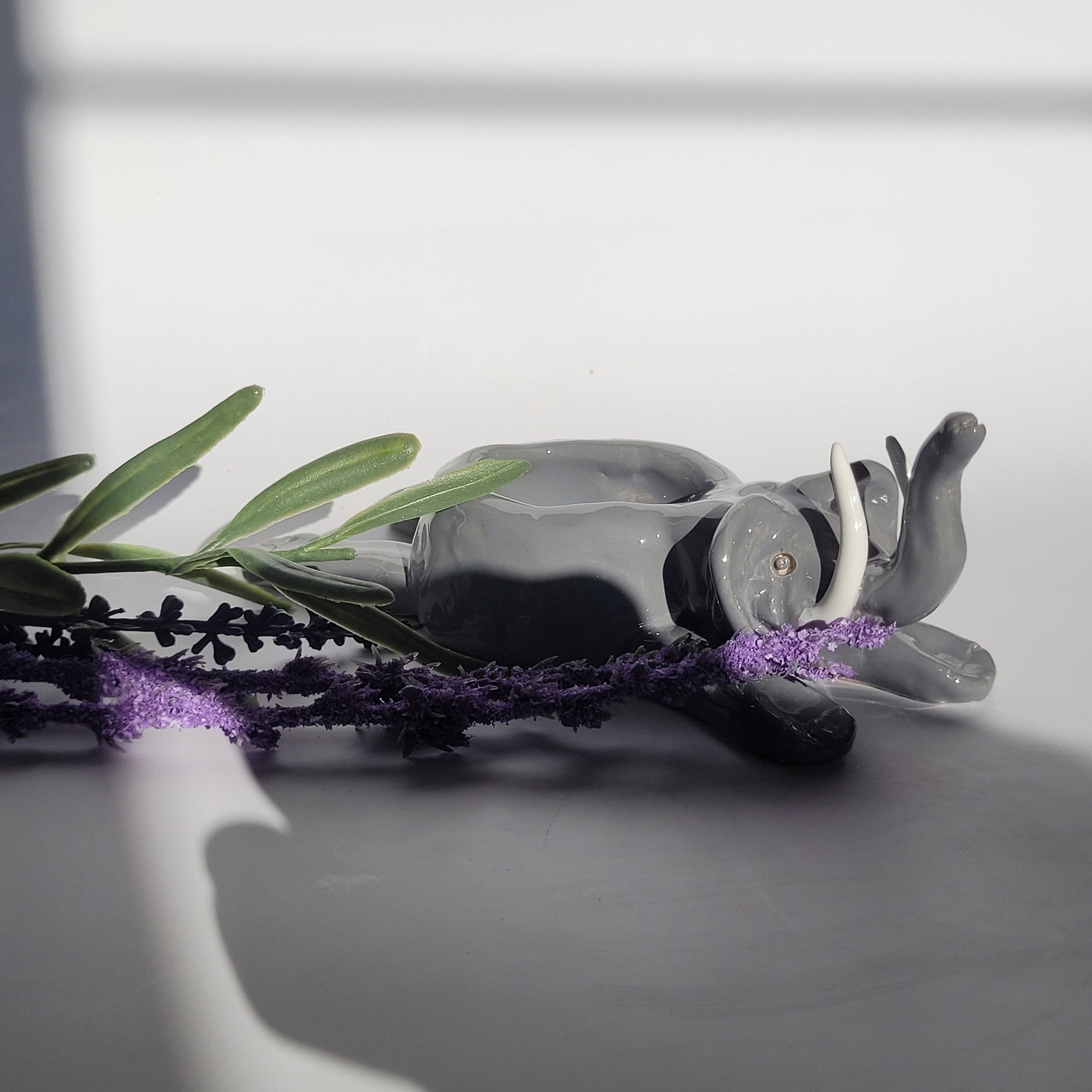Dieser liebevoll handgefertigte Kerzenhalter in Form eines Elefanten bringt Wärme und Charme in dein Zuhause. Aus Keramik gefertigt und in elegantem Grau glasiert, hält der kleine Elefant ein Teelicht sicher in seinem Rücken. Die weißen Stoßzähne und die Augenpartie verleihen ihm einen besonderen Charakter.